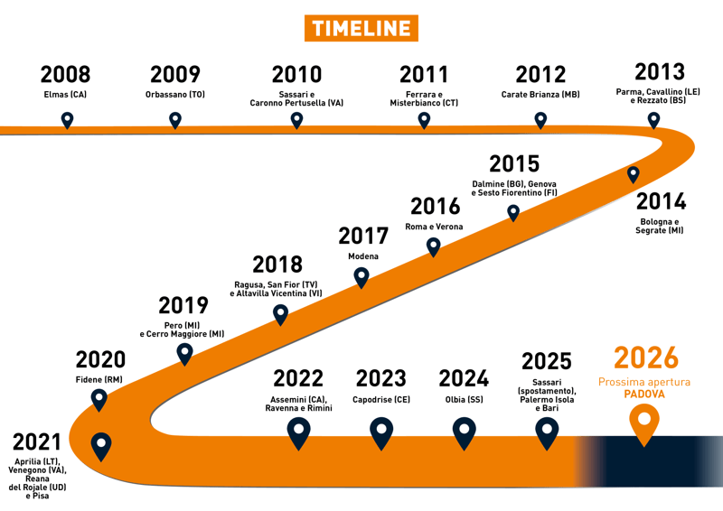 Ogni punto vendita occupa circa 150 persone con un fatturato medio che si aggira intorno ai 50 milioni di euro. Il piano di sviluppo territoriale che abbiamo definito e che vede 3 nuove aperture ogni anno, creerà circa 600 posti di lavoro in più all’anno”